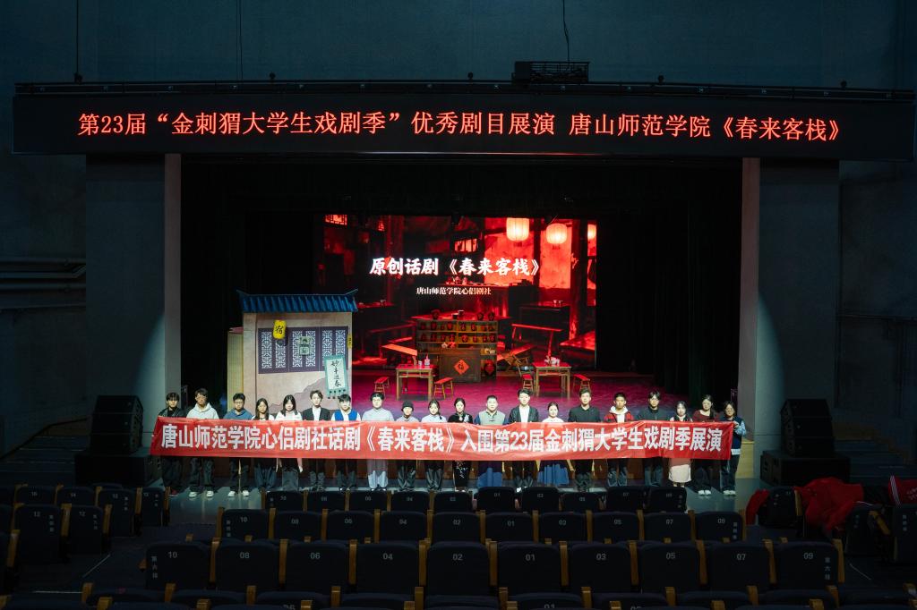 本届“金刺猬大学生戏剧季”由北京市文化和旅游局、共青团北京市委员会等单位联合主办,吸引了全国30个省(自治区、直辖市)132所高校的406部作品报名参赛。经过多轮严格评选,《春来客栈》凭借鲜明的地域特色、深刻的主题表达和精湛的舞台呈现脱颖而出,成为河北省唯一入围的剧目,为我校赢得了展示戏剧创作成果的国家级平台机遇。